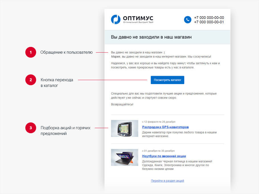 Это цепочки писем, которые запускаются после определенного действия или события — успешного заказа, брошенной корзины или если пользователь не заходил в ваш интернет-магазин в течение нескольких месяцев или давно не совершал покупки.