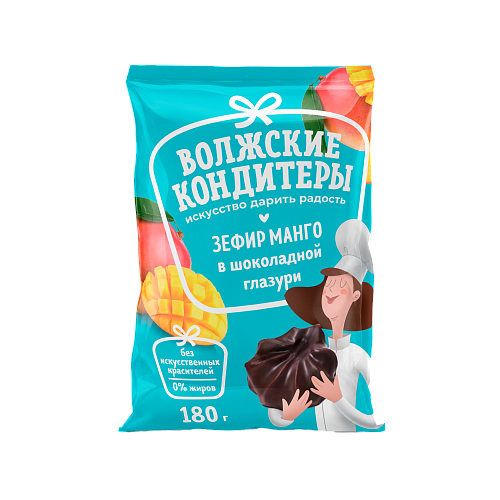 Зефир "Манго" в шоколадной глазури ГОСТ 6441-2014 Сахар белый кристалический, вода, глазурь «кондитерская темная» (сахар, заменитель масло какао