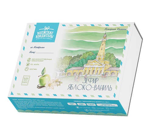Сахар-песок, вода, патока, пектин (желирующий агент), белок яичный сухой, регулятор кислотности (молочная кислота, лактат натрия), яблоко сушеное измельченное, ароматизатор пищевой натуральный (ваниль, зеленое яблоко), краситель пищевой (михромовый зеленый). Упаковка и фасовка:
